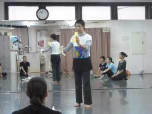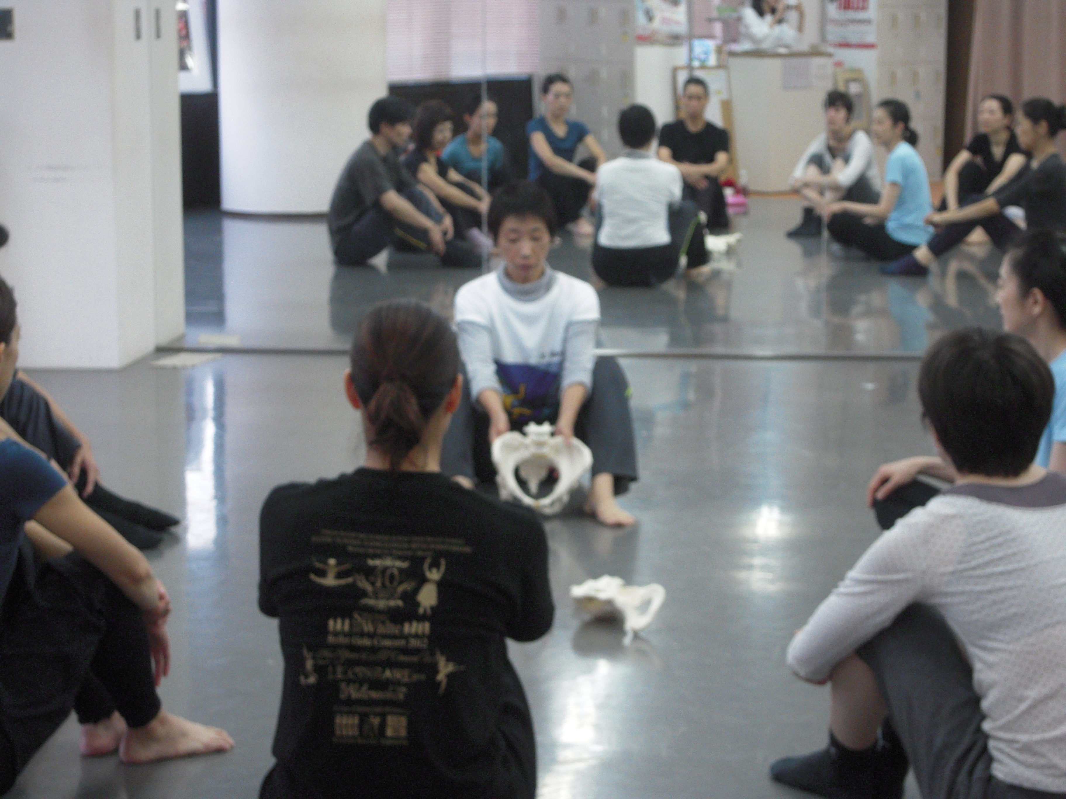 骨格の模型を使用したレクチャーからイメージをし実際に動いてみます。
